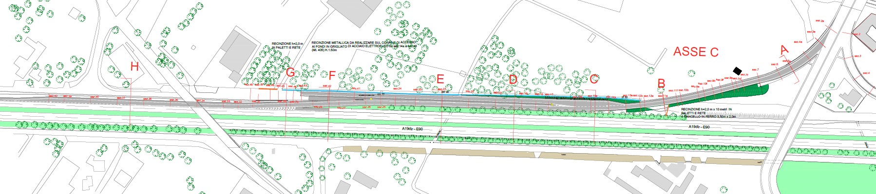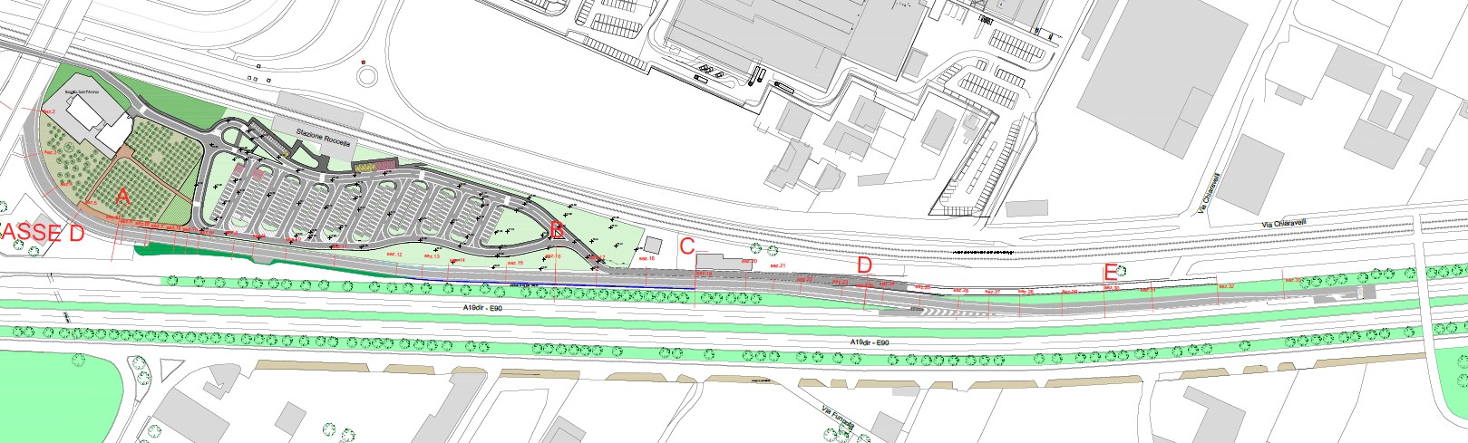 Progettazione, direzione lavori e cordinamento sicurezza – opere di urbanizzazione a scomputo forum – Brancaccio, Palermo – per la realizzazione del nuovo svincolo roccella; rampa in uscita dall’autostrada con provenienza Catania (asse D); parcheggio lato ferrovia (p2); verde “Baglio s. Anna”; rampa di ingresso in autostrada (asse C)